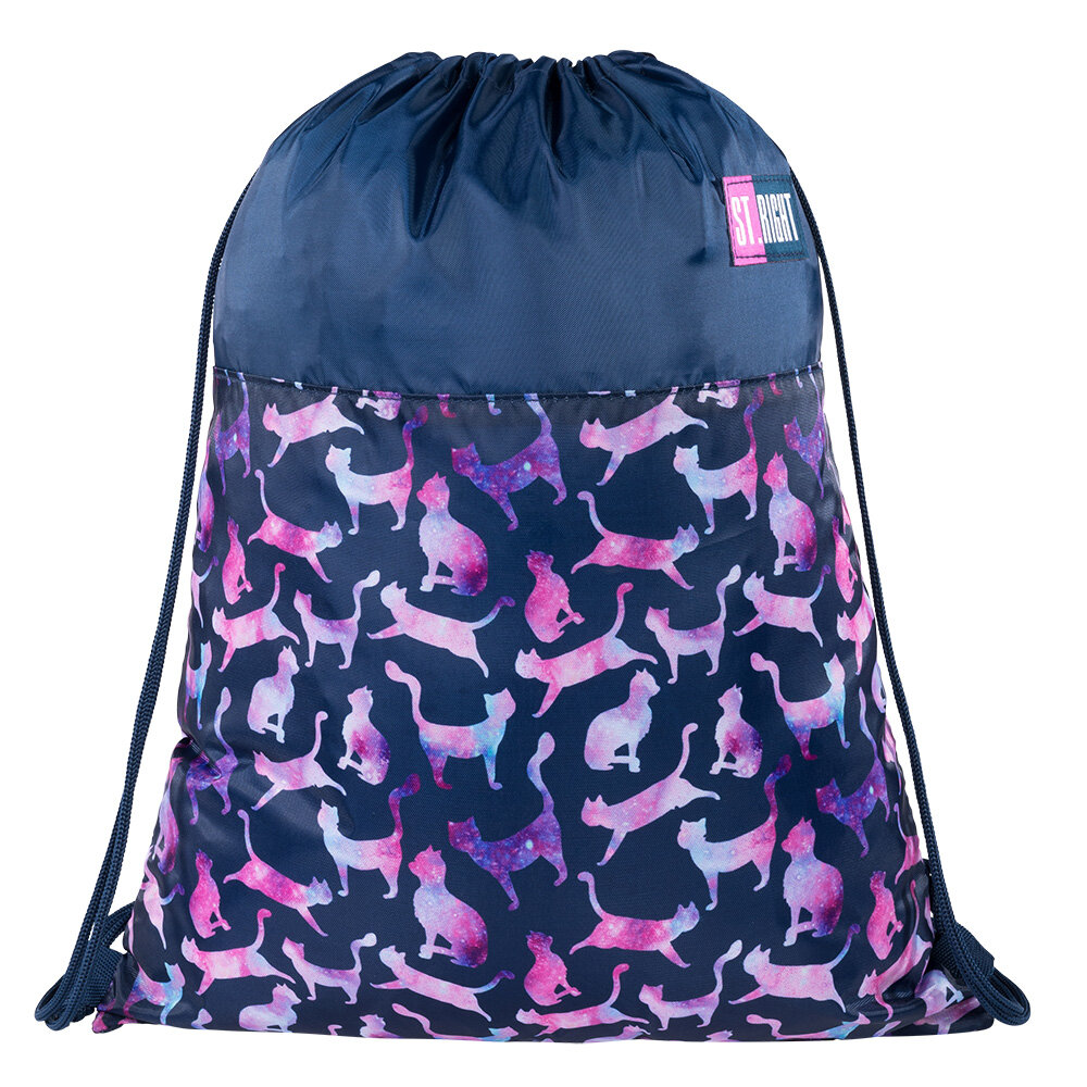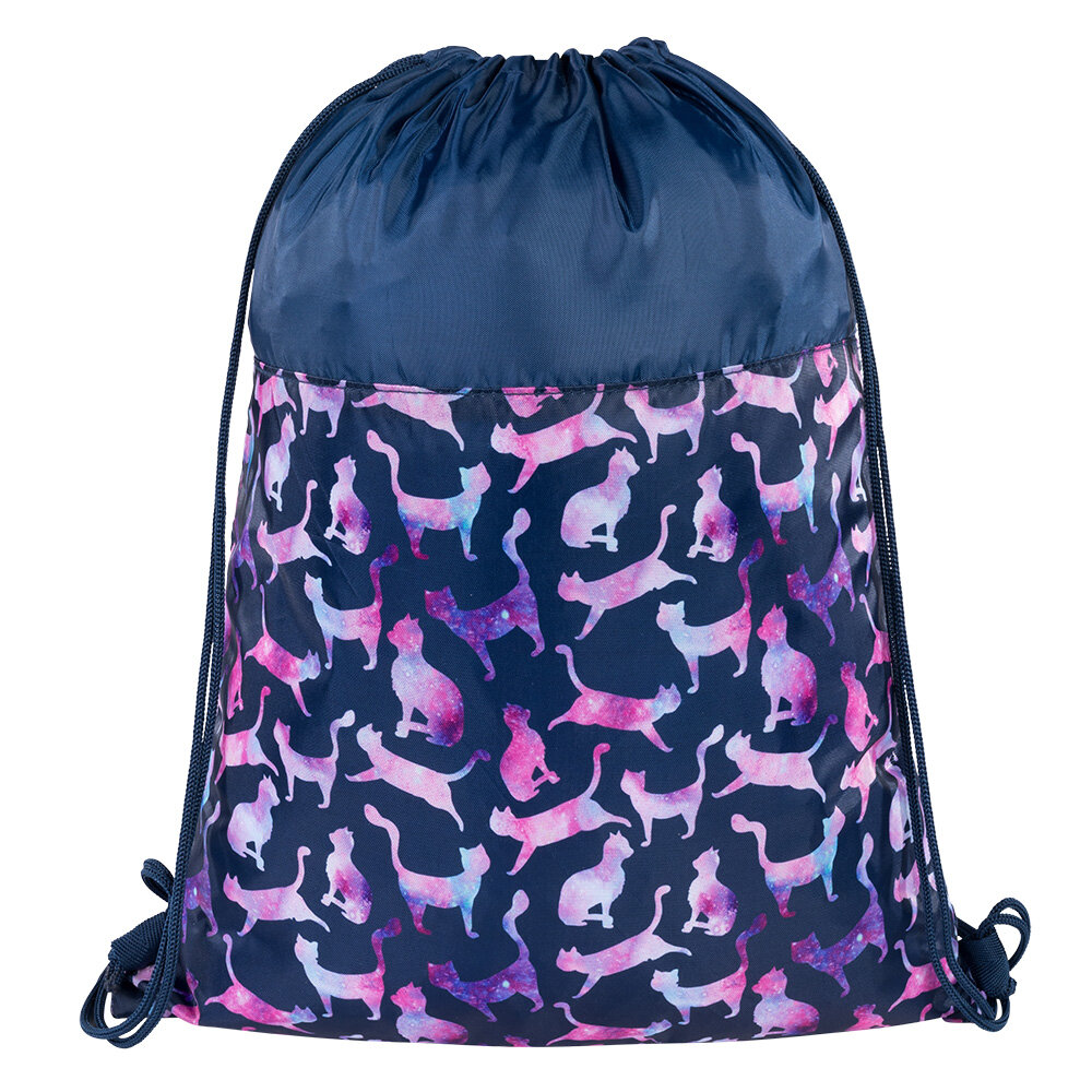 Kolorowy worek na sznurkach Bambino. Grafika z kosmiczny kotkami spodoba się niejednemu maluchowi. Worko-plecak doskonale nada się do spakowania butów na zmianę lub stroju gimnastycznego. Wymiary: 34 cm x 43 cm.