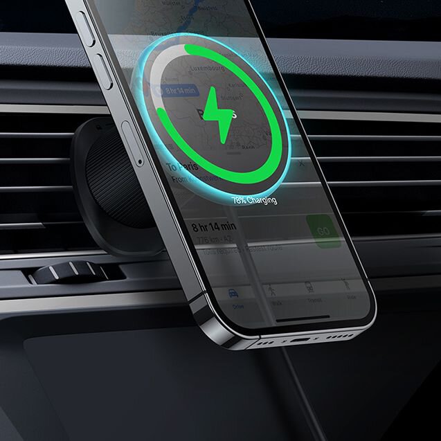 Już nie musisz się martwić, że Twój smartfon rozładuje się w czasie podróży samochodem. Magnetyczny uchwyt samochodowy z ładowarką umożliwia bezprzewodowe odnawianie energii kompatybilnych urządzeń. Dzięki mocy 15W szybko odnowisz energię urządzenia. Zamontuj uchwyt na kratce swojego samochodu i bezpiecznie ładuj sprzęt. W zestawie znajdziesz też magnetyczny pierścień na smartfon do ładowania indukcyjnego.