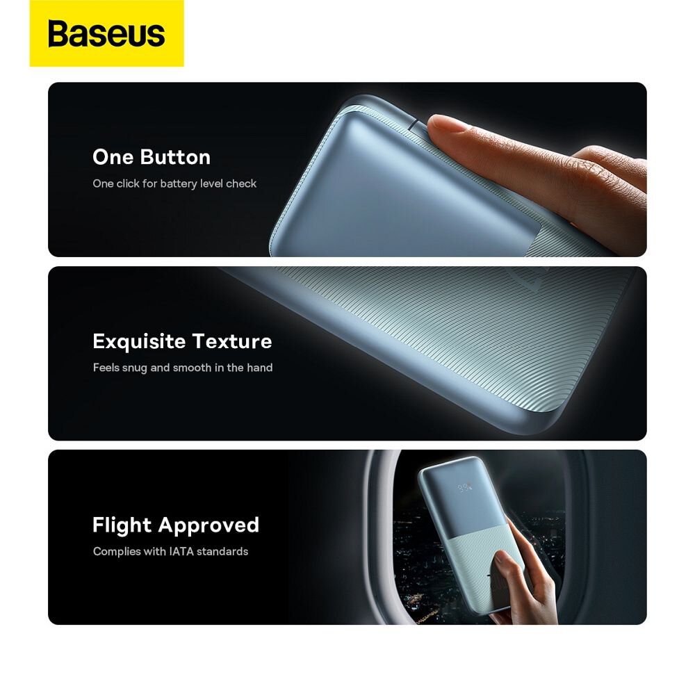 BASEUS powerbank 10 000 mAh + kabel USB A do Typ C PD QC3.0 3A 20W PPBD040103 niebieski