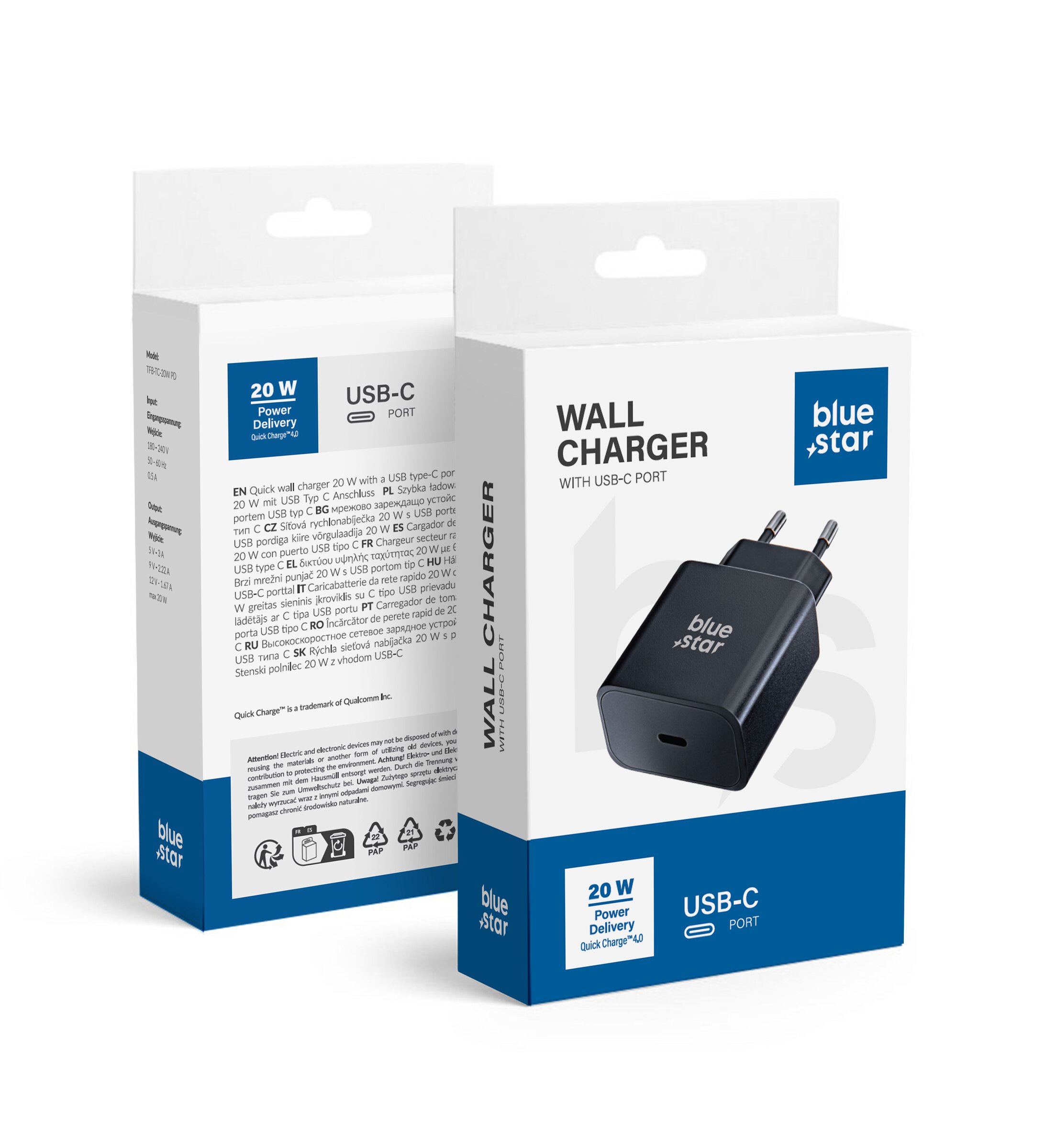 BLUE STAR adowarka sieciowa Typ C PD QC4.0 3A 20W TFB-TC-20WPD czarna