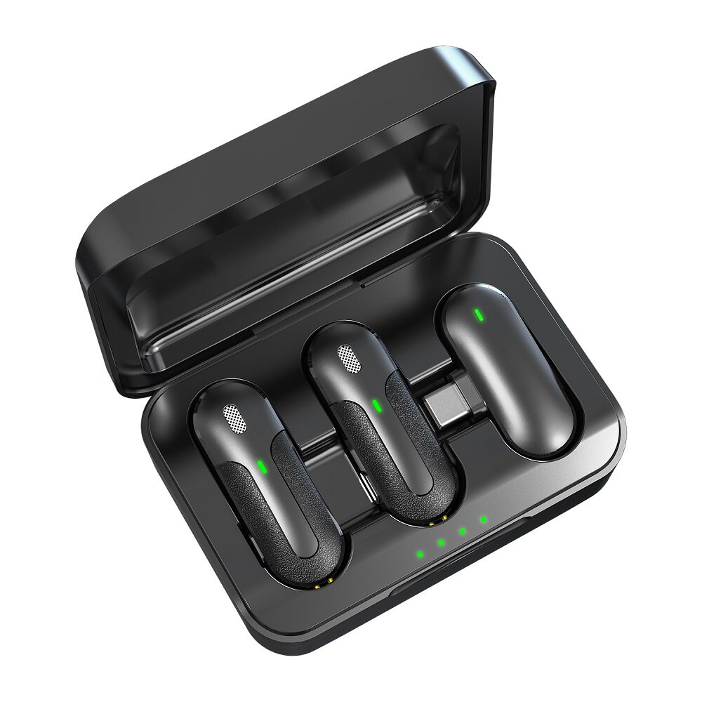 Devia mikrofon do telefonu Kintone USB-C bezprzewodowy podwójny krawatowy czarny