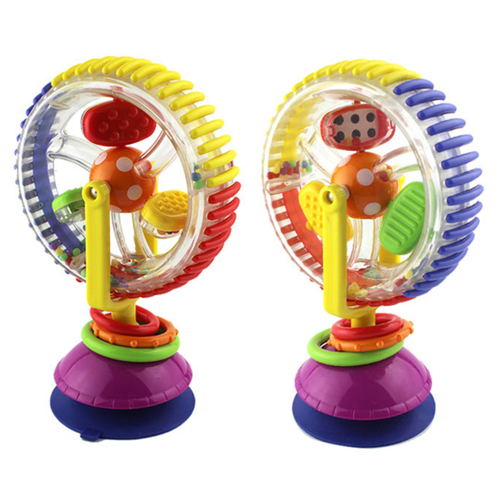 Diabelski młyn grzechotka na przyssawkę jest rewelacyjną zabawką dla maluszka. Zabawka wyposażona w wielobarwne elementy które przyciągną uwagę dziecka, a podczas obserwowania i dotykania grzechotki maluch ćwiczy koordynację wzrokowo ruchową.