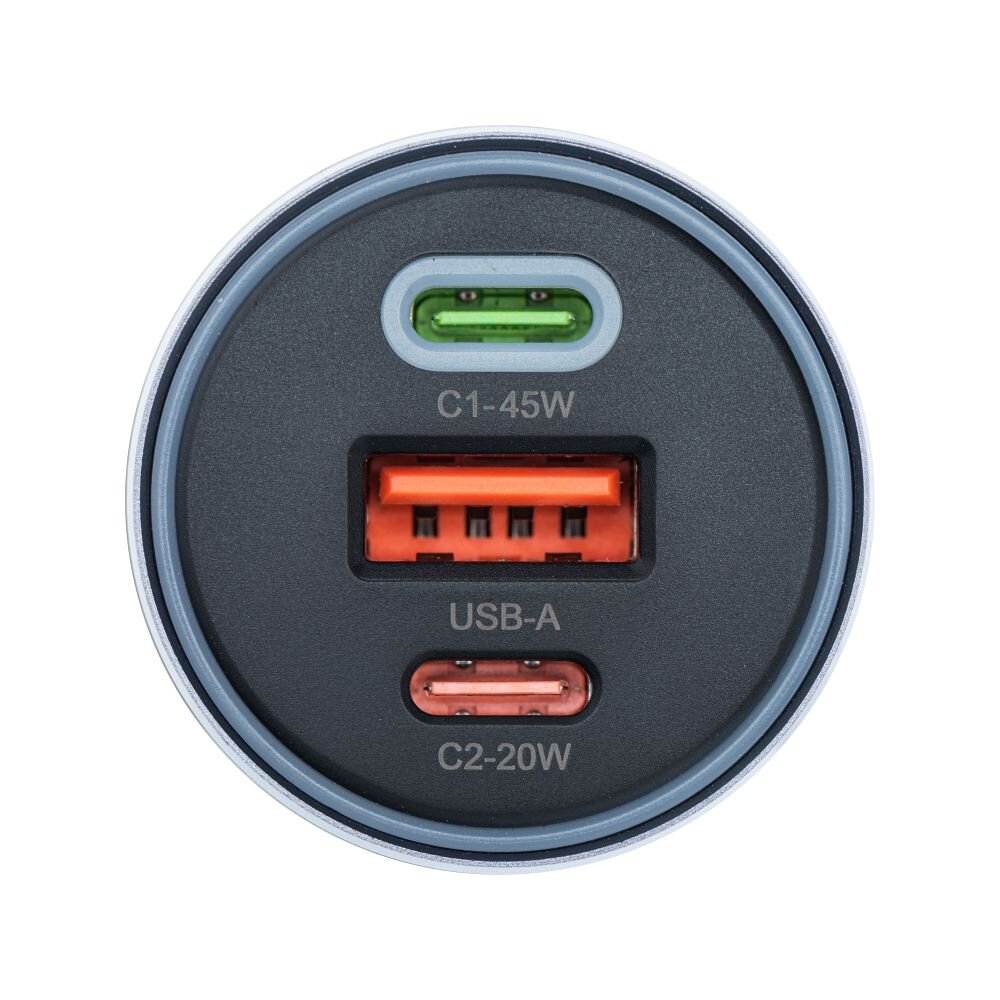 FORCELL F-ENERGY Alu adowarka samochodowa 2 x Typ C + USB A PD QC4.0 SFC2.0 4,5A 65W szara