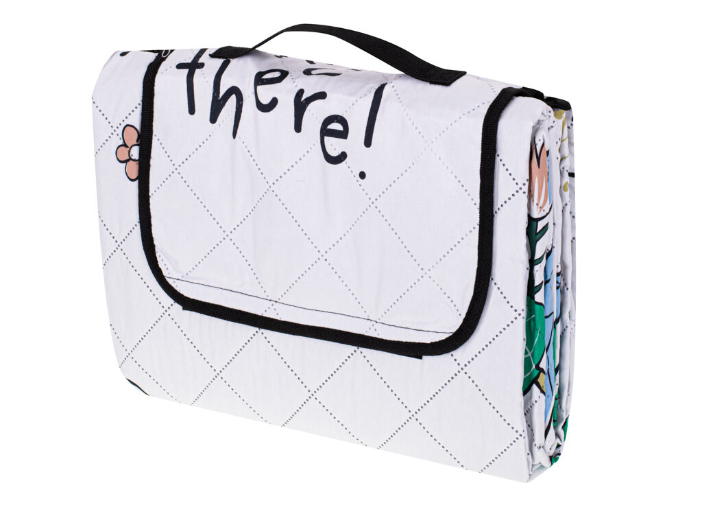 Spód maty tworzy wodoodporny materiał, dzięki temu możesz położyć koc na mokrej trawie bez obaw, że zaraz przemoknie a Ty wraz z nim.