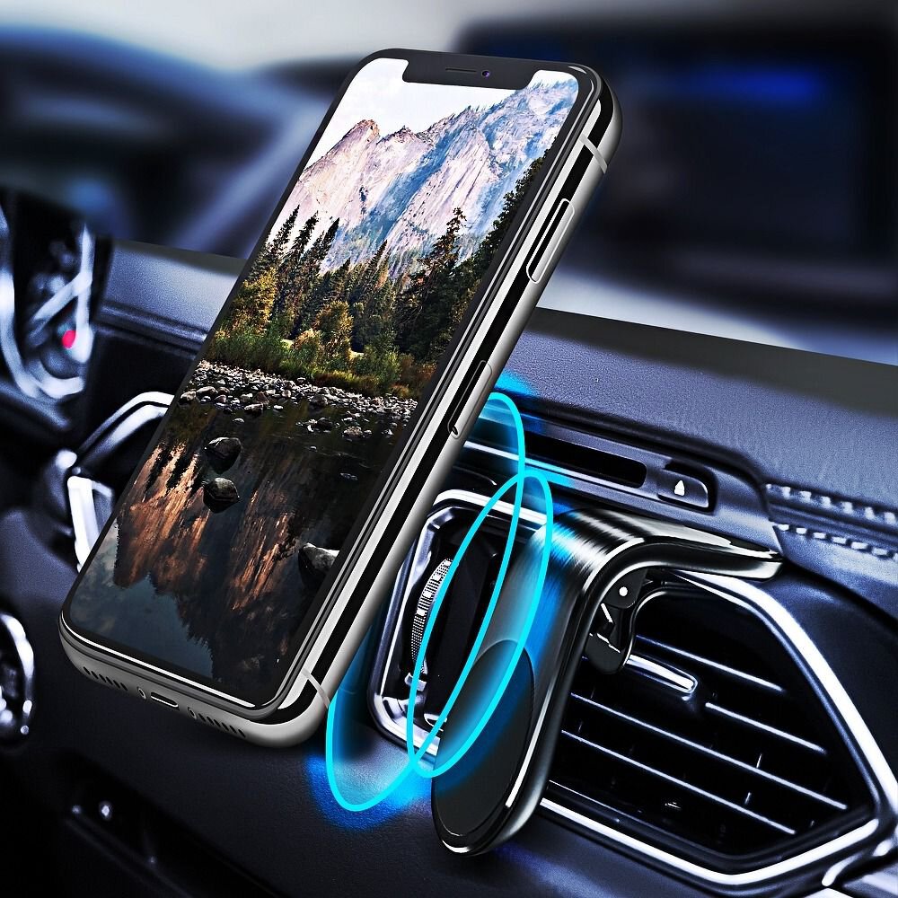 Magnetyczny uchwyt samochodowy do kratki - AIR OUTLET. Ułatwia korzystanie z telefonu w trakcie jazdy samochodem, sprawiając, że podróż staje się komfortowa i bezpieczna.